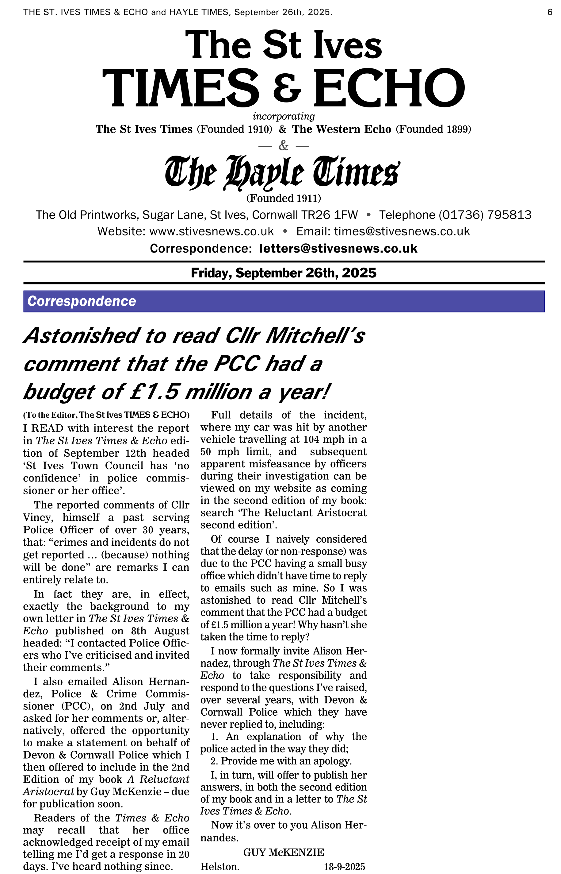 And don't start me off by saying that I should make an official complaint. At a recent count there were, I understand, 1,600 official complaints outstanding against Devon & Cornwall Police! And who deals with the complaints?