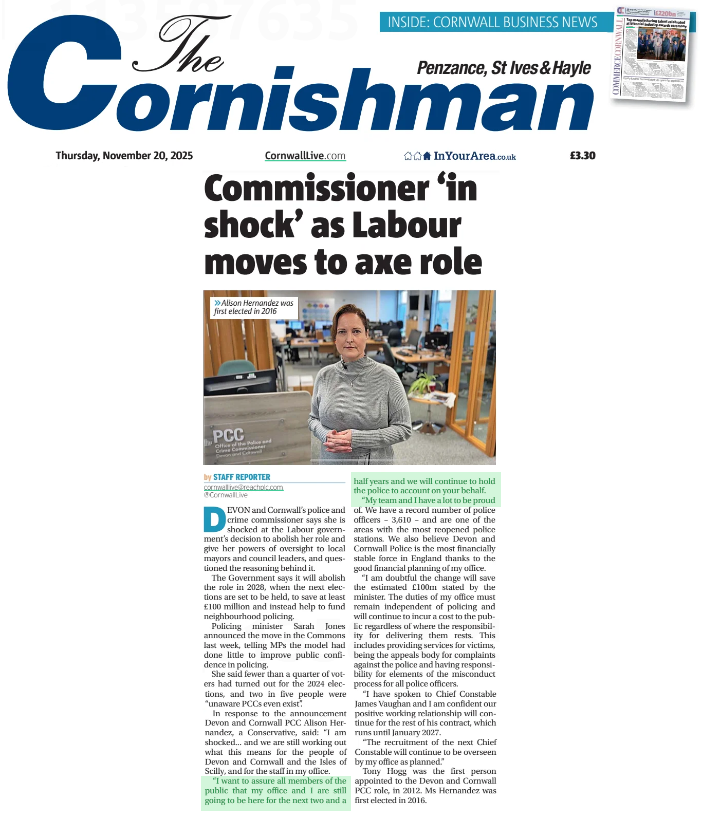 Devon & Cornwall PCC, Alison Hernandez, & Cornwall's Costly Chief Constable Crisis